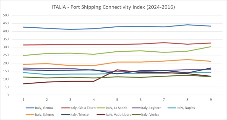 Genova, Gioia Tauro e La Spezia sono ancora una volte nell’ordine i porti italiani più connessi dalle linee container globali, con tendenze però diverse tra loro.